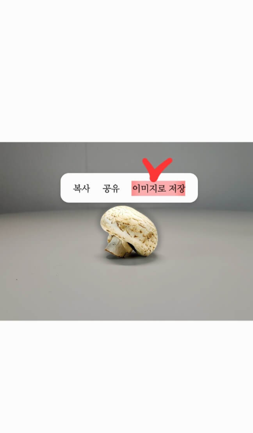 4.  그러면 양송이버섯 위에 탭이 뜹니다. 이 중에서 '이미지로 저장'을 눌러줍니다.