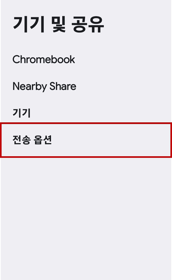 3. 전송옵션을 찾아서 누릅니다.